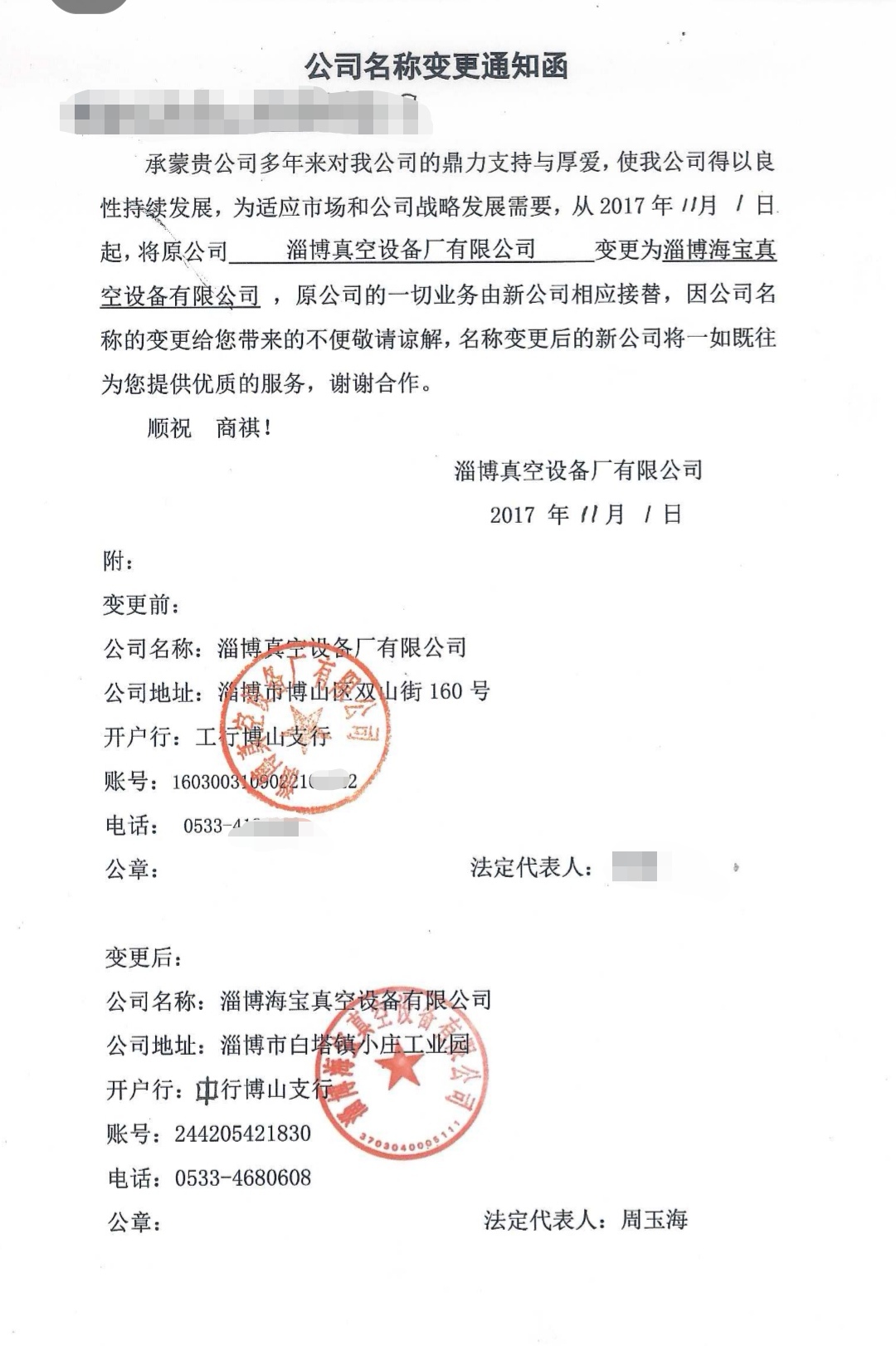 淄博海寶真空設(shè)備有限公司未經(jīng)我公司授權(quán),私自出具變更函,給客戶和我公司帶來了巨大影響,該變更函純屬海寶真空私自偽造,提醒廣大用戶接收到類似變更函,一定要先與我公司核實(shí),避免造成重大損失。